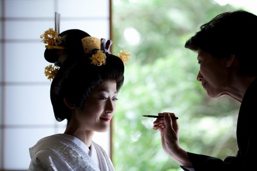 花嫁支度の仕上げとして、母から娘へ点す「嫁ぎの紅」を行っています。