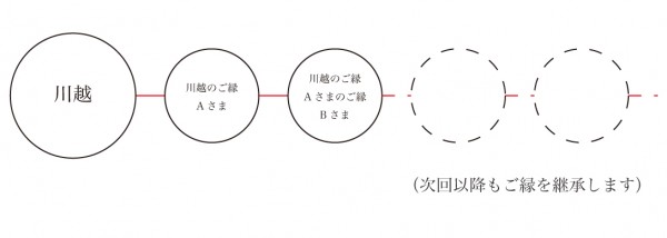 以下の図のように、川越、川越氷川神社を起点として、ご縁が継承される。